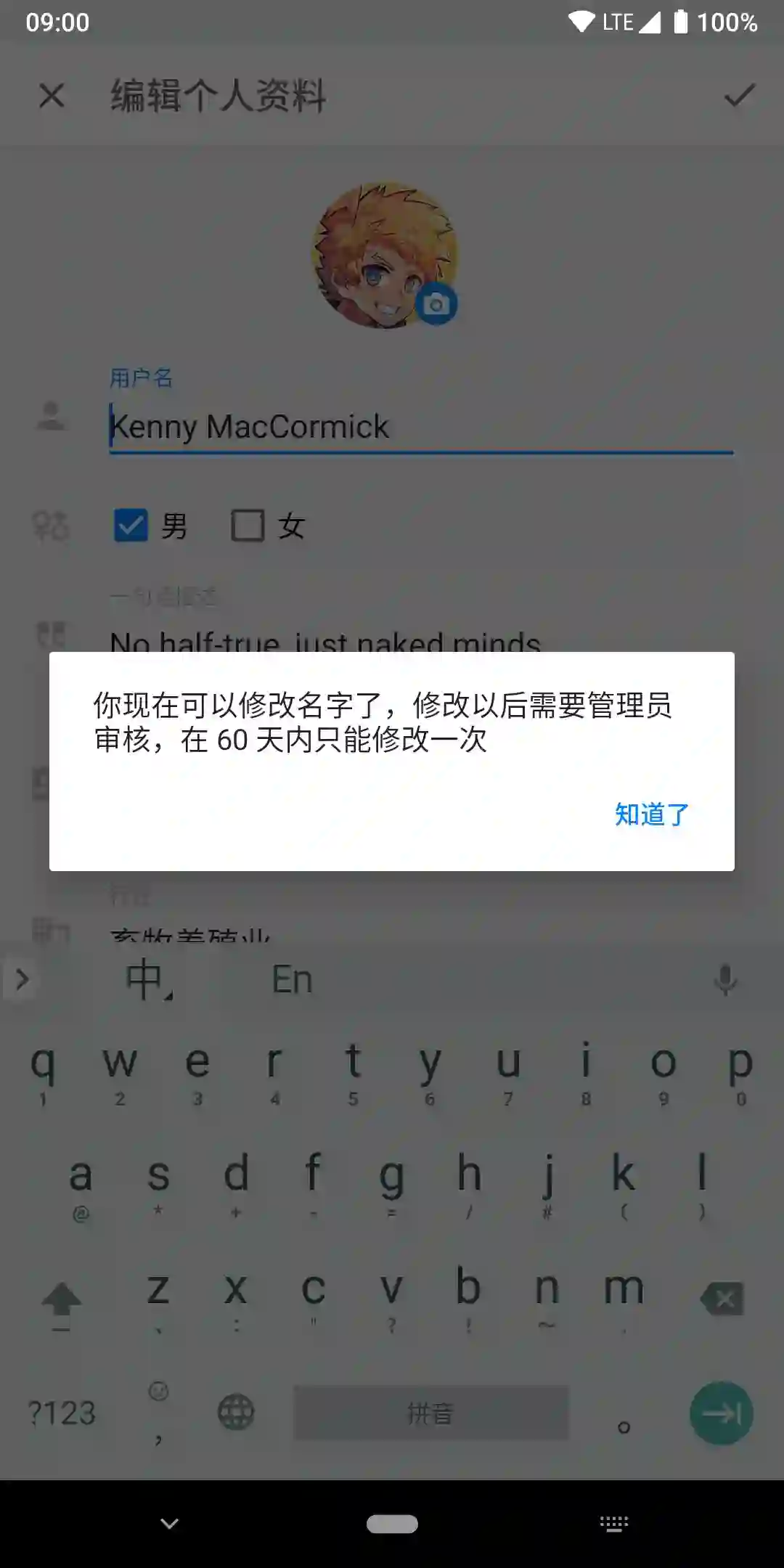 不过需要注意的是,修改名字依然要通过管理员审核。