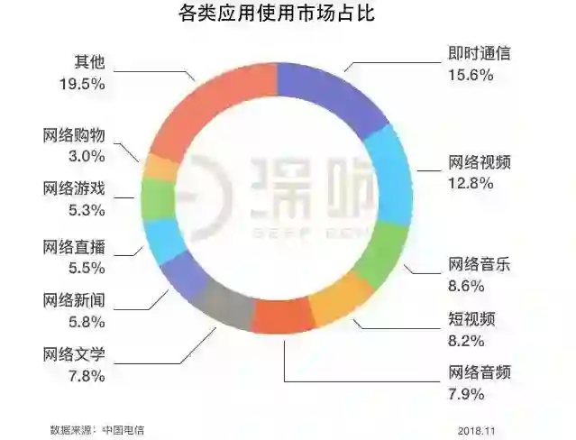 据中国互联网网络信息中心(CNNIC)发布的第43次《中国互联网络发展状况统计报告》指出,网络音频类应用(指可以收听网络电台等音频类节目的互联网应用类型)的使用时长占比达7.9%,位居第五位,前一位是占比8.2%的短视频,后一位是占比为7.8%的网络文学。