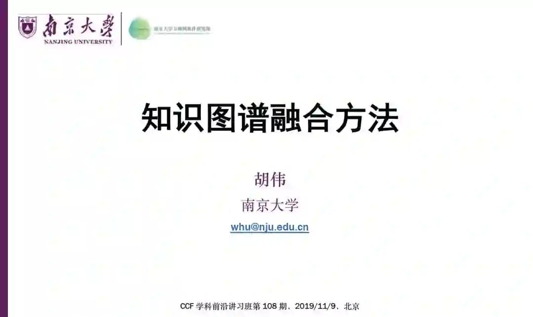 胡伟. 知识图谱融合方法. CCF 学科前沿讲习班, 2019