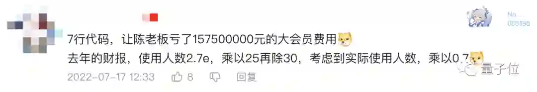 有人就在此算了一笔账,称就是这7行代码,让b站老板一下亏了大约1,5750,0000元。(手动狗头)