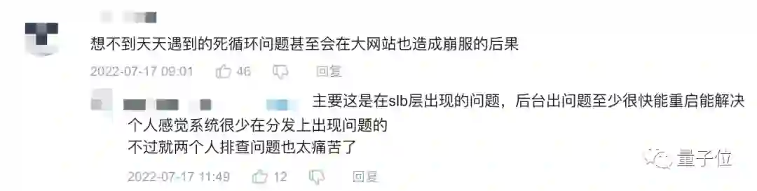 不过,有人指出,死循环不罕见,罕见的是在SLB层、在分发过程出问题,它还不像在后台出问题很快能重启解决。