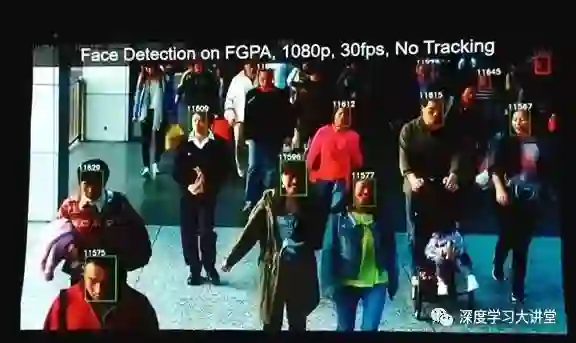上图所示是一个视频(截图),可以看到,我们在一个非常低功耗的FPGA上可以做到实时的、1080p高清的、视频的、没有任何跟踪环节的逐帧检测。