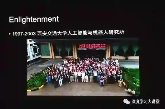 首先介绍一下我的求学经历。我在西安交通大学人工智能与机器人研究所(人机所)攻读硕士和博士学位,上面是去年我们人机所30年所庆时由无人机拍摄的照片。当年能加入人机所,我感到非常幸运。如今,人机所成立30年,恰好人工智能的发展是60年。