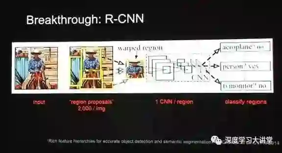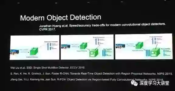 这其中最重要的突破是Ross做的Region-CNN。我这边列出了一些后来的工作,也包括我们的一些工作。