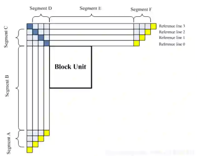 与H.265/HEVCSCC extension中的IBC不同,在H.266/VVC的IBC技术中,所有能够对当前编码块进行预测的当前图像的重建像素,将存放在大小为1个CTU的高速访问内存空间中,并通过当前块所在当前CTU中的位置,阶段性的刷新这个内存空间,实现最大化IBC的预测范围的目的。
