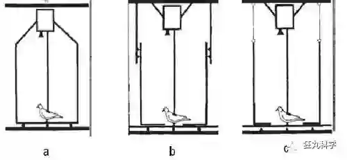 实验是这样的:他先将鸽子放在一个滑板上,然后用一个密闭的纸箱将鸽子罩住,箱子内顶上安装有摄像头用于观察。滑板运动的时候,鸽子眼中看到的图像没有任何变化,此时鸽子没有任何动作。