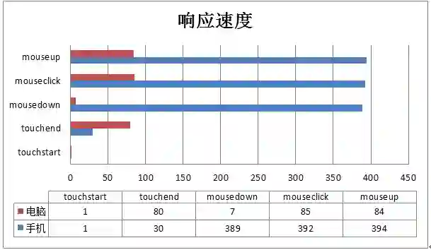 在手机上,click的延迟将近400ms。对于用户而言,是一个很严重的延迟了!所以在手机上,并不建议用click。