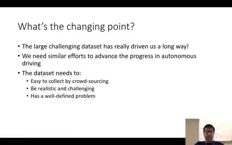 那么,许华哲认为自动驾驶领域也需要一个起到同样作用的数据集,它应当由众包得到,应当是真实的、足够难的、有一个明确的任务目标