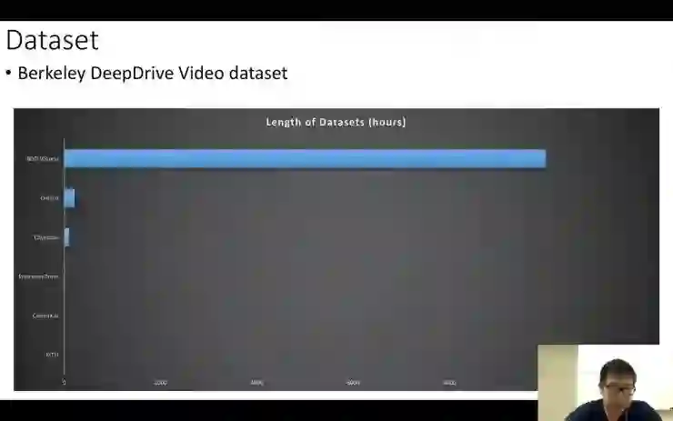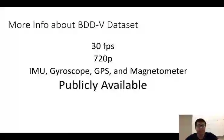 这几个数据集都不算令人满意。为了大幅度提升时长和丰富程度,许华哲他们想到了众包的方法,与 Uber 合作,采集、使用了司机视角的视频。这个数据集的特点是基于真实世界的、第一人称视角,从右侧样例里可以看到内容也非常丰富。
