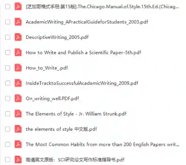 读万篇期刊,不如自成一篇!除了以上所有期刊的官网链接,小编还为大家贴心的整理了在写SCI论文写作时可能用到的一些干货,其中包含斯坦福大学公开课—SCI论文如何写作视频;多款文献管理软件及教程;论文撰写书籍;论文写作干货(投稿经验分享等)一键整理打包分享给大家!