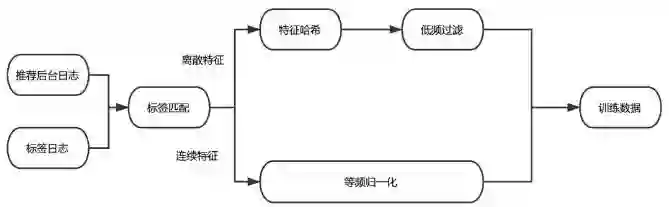 推荐后台日志会记录当前样本对应的User特征、Item特征与Context特征,Label日志会捕获用户对于推荐项的行为反馈。我们把两份数据按照唯一ID拼接到一起,生成原始的训练日志。