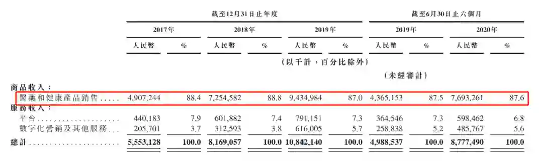 京东健康并不想在消费者心智中成为渠道。从招股书数据中,能看到京东健康在品牌上的发力。今年由于疫情原因,购药和问诊习惯开始向线上流动,京东健康抓住时机,从销售及市场推广开支来看,2020年上半年相比去年同期增加了超一倍,占到收入的近10%。