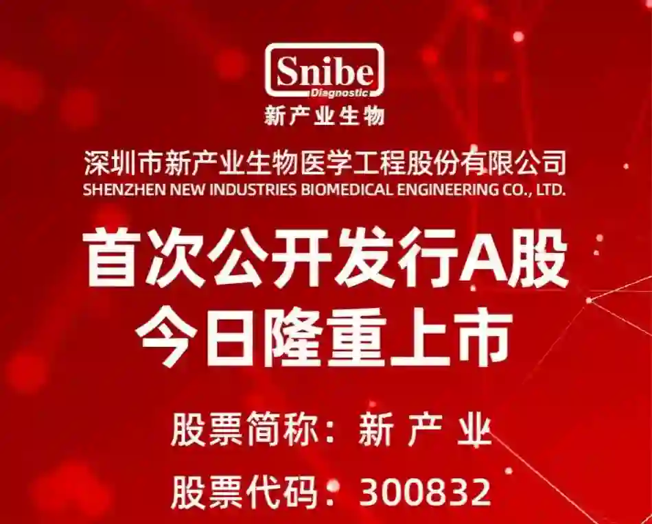 5月12日,中国化学发光免疫分析领域和体外诊断行业(IVD)的龙头企业深圳新产业生物(Snibe)于创业板挂牌上市。本次新产业生物的发行价为每股31.39元,开盘后获44%的顶格涨幅, 总市值达186亿元。