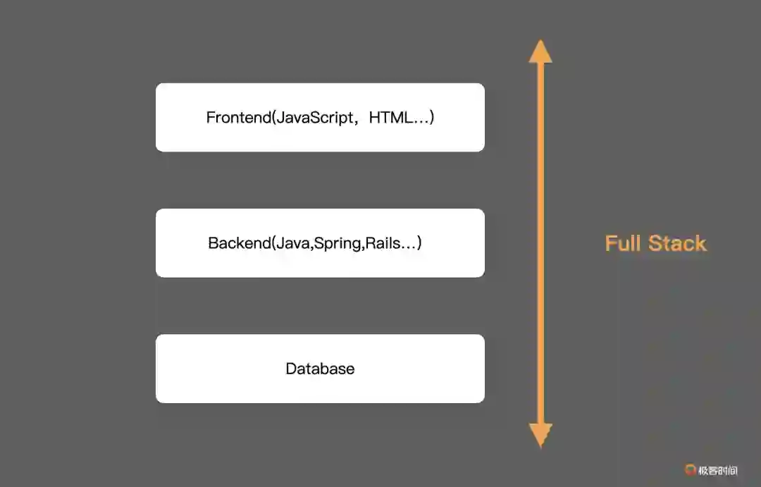 这就让 Full Stack 这个概念变得非常尴尬。要么我不切实际地希望你能掌握从头到尾所有使用到的技术,或者像之前一样,只要把它分散到小的模块中,就会被认为是 Full Stack。那么 Full Stack 又与我们之前讲的后端开发、前端开发到底有什么样的差异和区别呢?