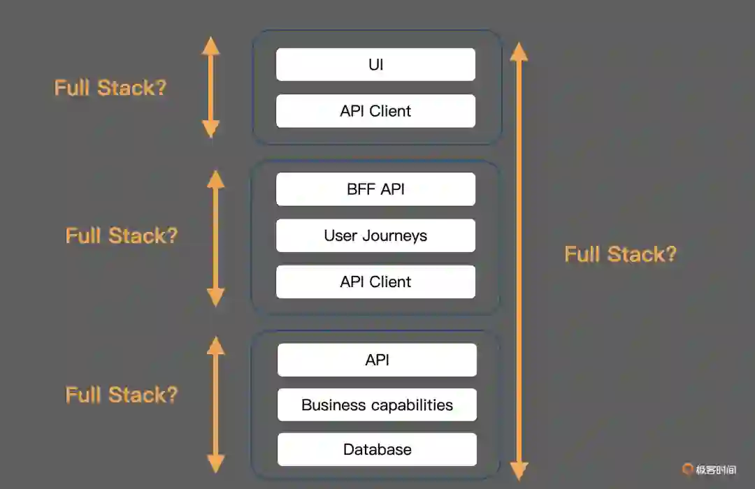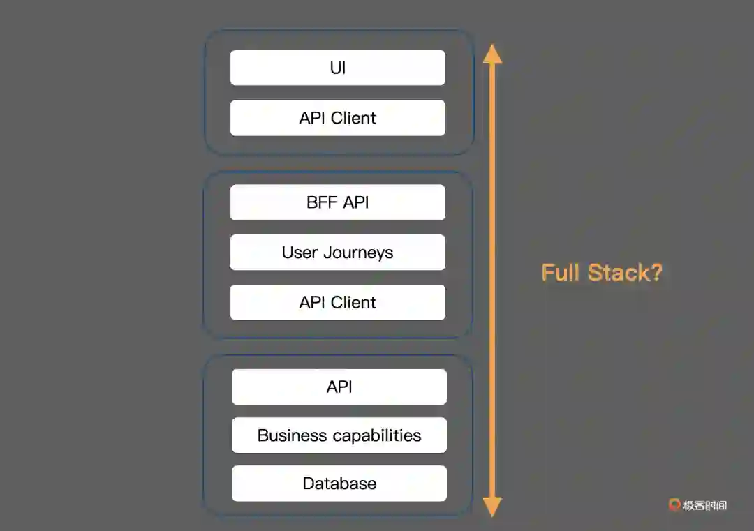 在今天这样一个场景下,我们不禁要问这样的问题,全栈工程师难道还像之前的概念一样,跨越客户端、BFF、Microservice,整个串在一起才叫 Full Stack 吗?还是说在独立的交付边界内,只要掌握了独立交付边界内的内容,就可以叫做 Full Stack 了?
