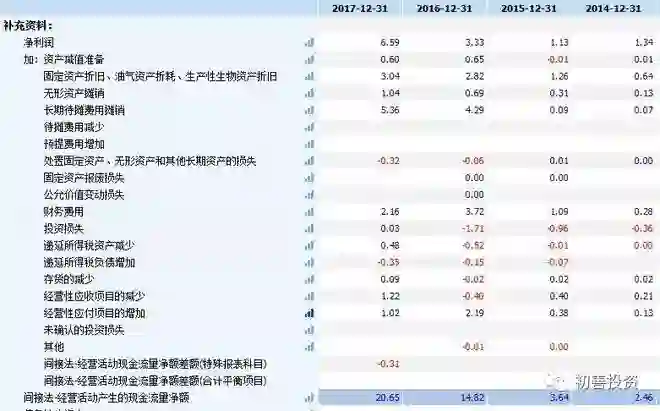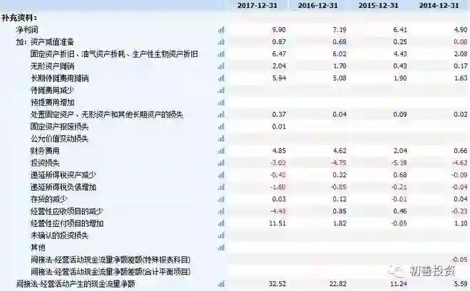让人艳羡的现金流。下图是锦江股份的间接法现金流量表,2017年实现净利润为9.9亿元,但是经营活动现金流量净额高达32.52亿元,净现比3.28倍,1元净利润可以带来3.28元的现金,而且这个数据一直在增长。