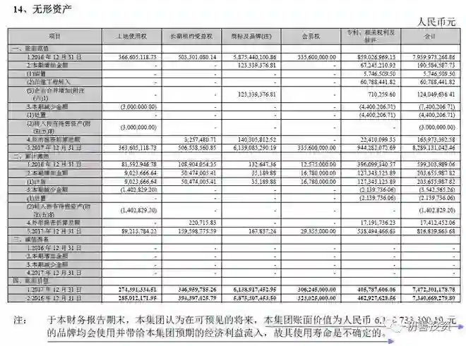 关于无形资产,我们看锦江股份的无形资产明细,75亿元的无形资产里,61.39亿元(占比82%)是商标及品牌。这块有什么问题呢?初善君印象里中国会计准则下是没有这个内容的,可能跟收购有关,问题在于初善君下表画出来的内容:本集团账面价值为人民币6,138,733,390.19元的品牌均会使用并带给本集团预期的经济利益流入,故其使用寿命是不确定的。即这部分无形资产跟商誉一样,不需要摊销,能带来经济利益流入,而不摊销,自然会放大企业的盈利。