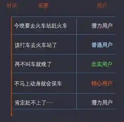 但我们可以尝试以其他维度来划分不同的用户层级,下面我们举出一些例子就能很好的理解滴滴用户的层级转变了。