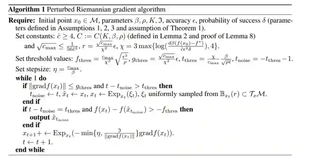 只要函数和流形具备恰当的平滑度,则扰动黎曼梯度下降算法能够避开鞍点