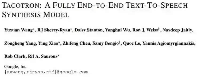 论文:Tacotron:一个完全端到端的文本转语音合成模型(Tacotron: A Fully End-to-End Text-To-Speech Synthesis Model)