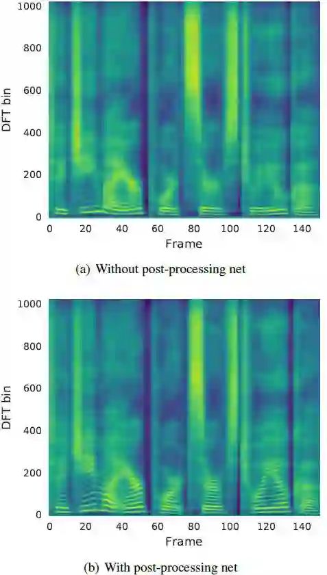 图 4:使用和不使用后处理网络的预测谱图对比