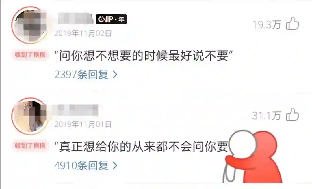 配合治愈计划还诞生了一个十分细腻的功能,用户可以任选一条评论,予以“抱抱”。