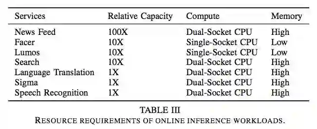 表3:在线推理工作负载的资源需求。