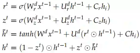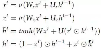 可以看成对整个句子语义的编码。t 时刻 GRU 的计算公式为:
