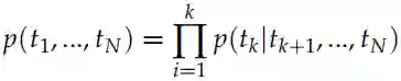 给定一个长度为 N 的句子,假设为 t1, t2, ..., tN,语言模型会计算给定 t1, ..., tk−1 的条件下出现 tk 的概率: