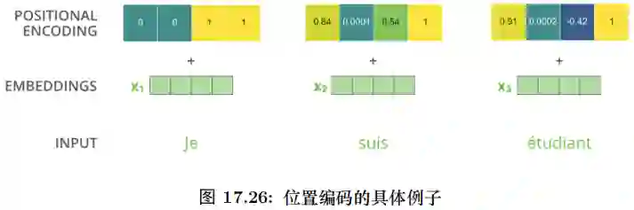 图17.6更加明确的表达了这一点。图中 Self-Attention 层是一个大的方框,表示它的输入是所有的 x1, ..., xn,输出是 z1, ..., zn。而全连接层每个时刻是一个方框,表示计算 ri 只需要 zi。此外,前一层的输出 r1, ...,rn 直接输入到下一层。