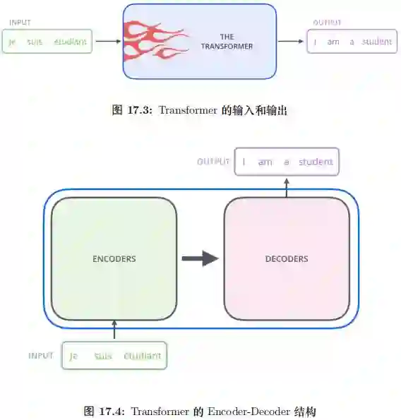 我们首先把模型看成一个黑盒子,如图15.51所示,对于机器翻译来说,它的输入是源语言 (法语) 的句子,输出是目标语言 (英语) 的句子。