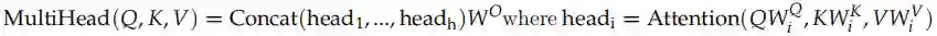 这篇论文还提出了 Multi-Head Attention 的概念。其实很简单,前面定义的一组 Q、K 和 V 可以让一个词 attend to 相关的词,我们可以定义多组 Q、K 和 V,它们分别可以关注不同的上下文。