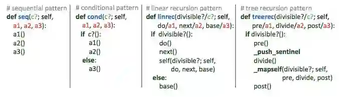 本文提出用四个组合子来表征算法任务中最常见的四种编程模式:顺序模式、条件模式、线性递归和树形递归(即多重递归)。四个组合子的伪代码见图 2。