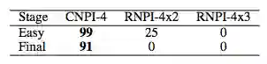表 6:增强学习训练 CNPI、RNPI 模型,完成简单版任务和最终版任务的成功率。