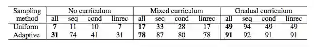 表 5:采用不同的采样方法及课程时,增强学习训练 CNPI 核的成功率。