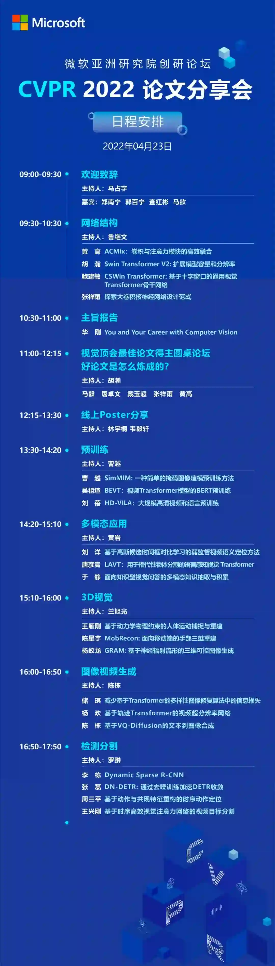 4 月 23 日,CVPR 2022 论文分享会等你准时线上赴约!为了让更多感兴趣的朋友参与到精彩的分享会中,同时响应疫情防控政策,今年的 CVPR 论文分享会将在 B 站“微软中国视频中心”全程进行直播,参与方式详见本文文末。
