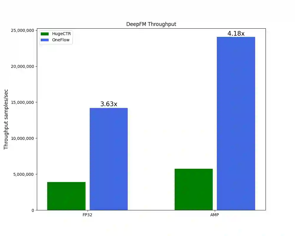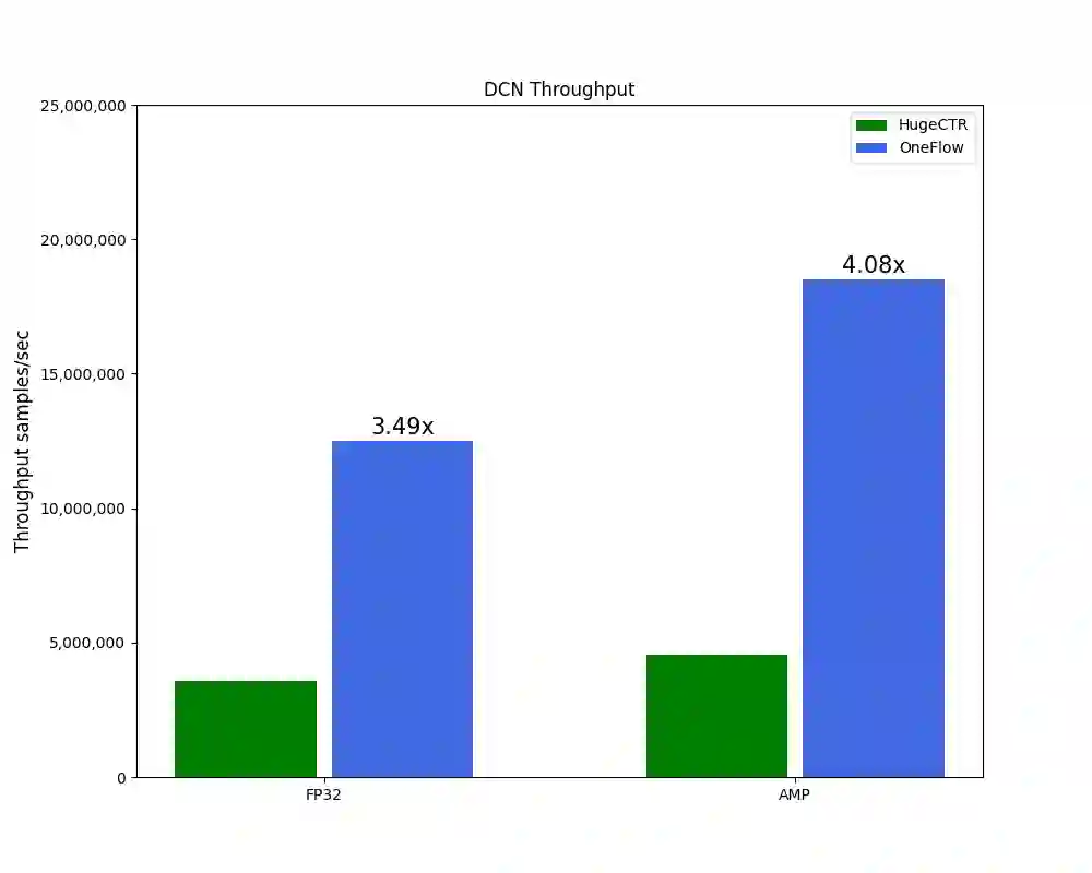 对于 DLRM、DCN 模型中的特征交叉部分,OneFlow 分别实现了 FusedDotFeatureInteraction 和 FusedCrossFeatureInteraction 算子。