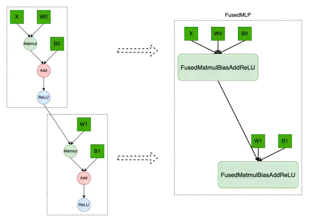 对于模型中多个全连接层部分,OneFlow 基于 cublasLt 矩阵运算库实现了 FusedMLP 算子。