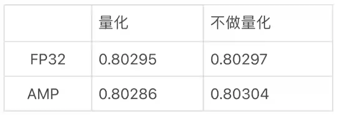 测试结果表明,在不影响模型精度的前提下, 量化通信在 FP32 的情况下相比默认通信模式有 64% 的提升, 在混合精度的情况下有 13% 的提升。