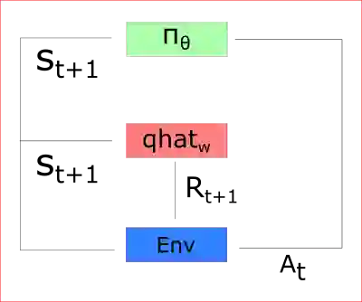 在每个时间步,我们从环境中获取当前状态(St),并将其作为输入传到Actor表演者和Critic评论家两模型中。