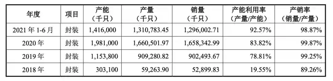 如今,随着国内经济活动步入正轨,甬矽电子的产能利用率持续攀升,其产能已处于较为饱和状态。其中在2021年上半年,公司产能为14.16亿只,销量为12.96亿只,产能利用率达92.57%,产销率达98.87%。