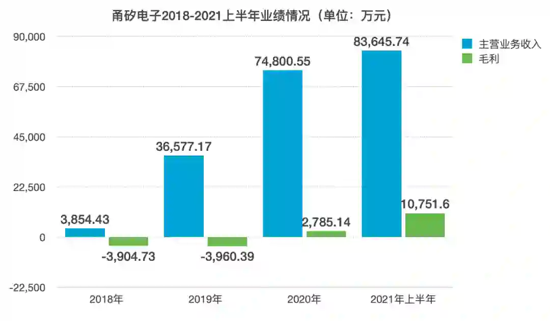 甬矽电子2018-2021年上半年主营业务收入(单位:万元)