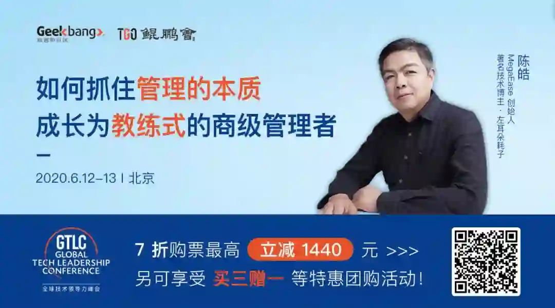 InfoQ 也随即对这篇文章进行了转载,在留言区,依然还有关于大量读者对于“远程办公”的人才选择与团队协作机制有较多的疑问。在这样的背景下,TGO 鲲鹏会对左耳朵耗子再次进行了专访,并特邀其莅临 2020 年 GTLC 全球技术领导力峰会总站现场(6 月 12 日 -13 日北京)演讲分享相关经验。(点击「阅读原文」,使用左耳朵耗子优惠码:HZ,获得 GTLC 最低折扣价)