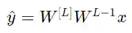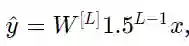 其中 L=10 ,且W[1]、W[2]…W[L-1]都是2*2矩阵,因为从第1层到L-1层都是2个神经元,接收2个输入。为了方便分析,如果假设W[1]=W[2]=…=W[L-1]=W,那么输出预测为