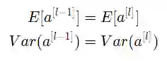 确保均值为零,并保持每层输入方差值不变,可以保证信号不会爆炸或消失。该方法既适用于前向传播(用于激活),也适用于向后传播(用于关于激活的成本梯度)。这里建议使用Xavier初始化(或其派生初始化方法),对于每个层l,有: