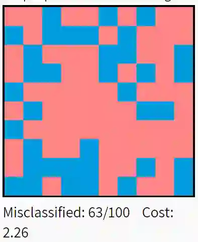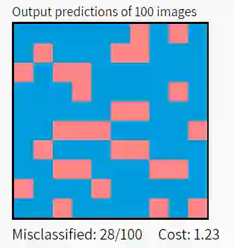 下图说明了Xavier初始化对五层全连接神经网络的影响。数据集为MNIST中选取的10000个手写数字,分类结果的红色方框表示错误分类,蓝色表示正确分类。