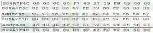 我们把内存定位到804A7F4C,然后切换到游戏中,用远程攻击斜向瞄准目标,可以看到从804a7f50开始的6个连续字节是固定变化的。