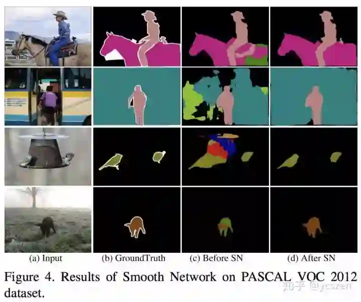 而通过可视化输出,可以看到Smooth Network确实可以将类内区域变得更加一致,如图8所示。