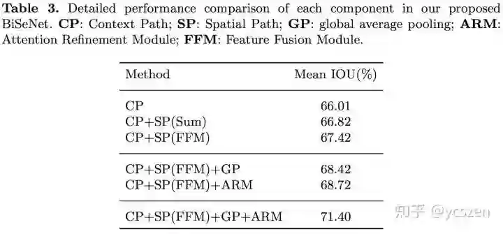 文中还对BiSeNet的各个部分进行了消融分析实验。