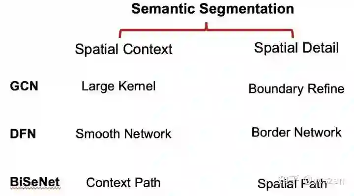 语义分割任务同时需要Spatial Context和Spatial Detail 。今天我们介绍的三种算法都将从这两方面分别提出各自对应的解决方案。整体对比如下: